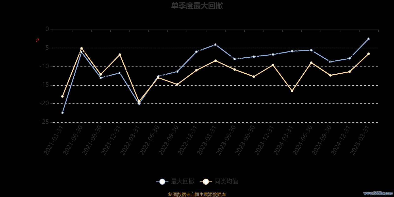 通过所选区间该基金净值增长率分位图,可以观察该基金与同类基金业绩比较情况。图为坐标原点到区间内某时点的净值增长率在同类基金中的分位数。