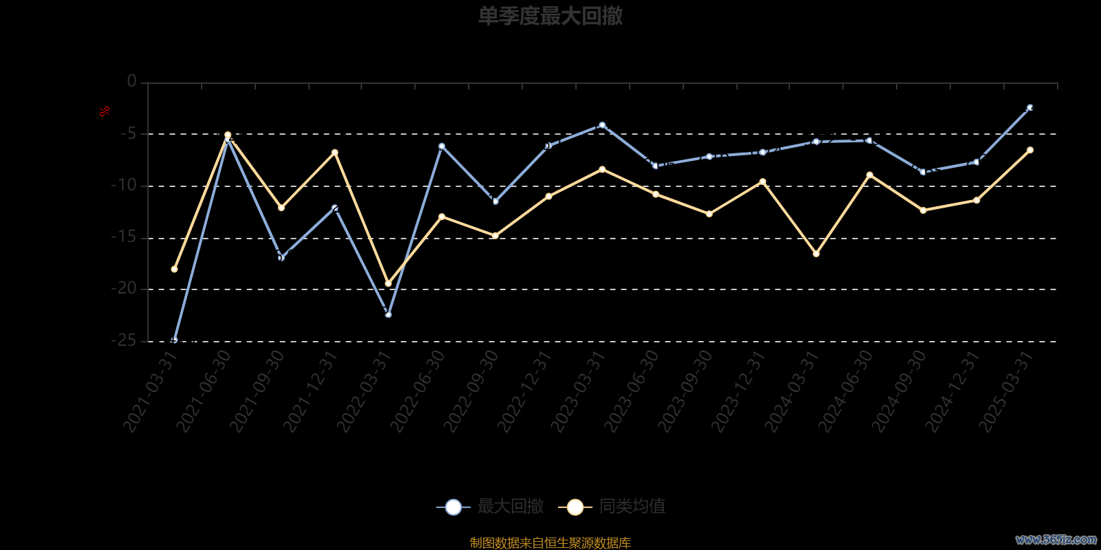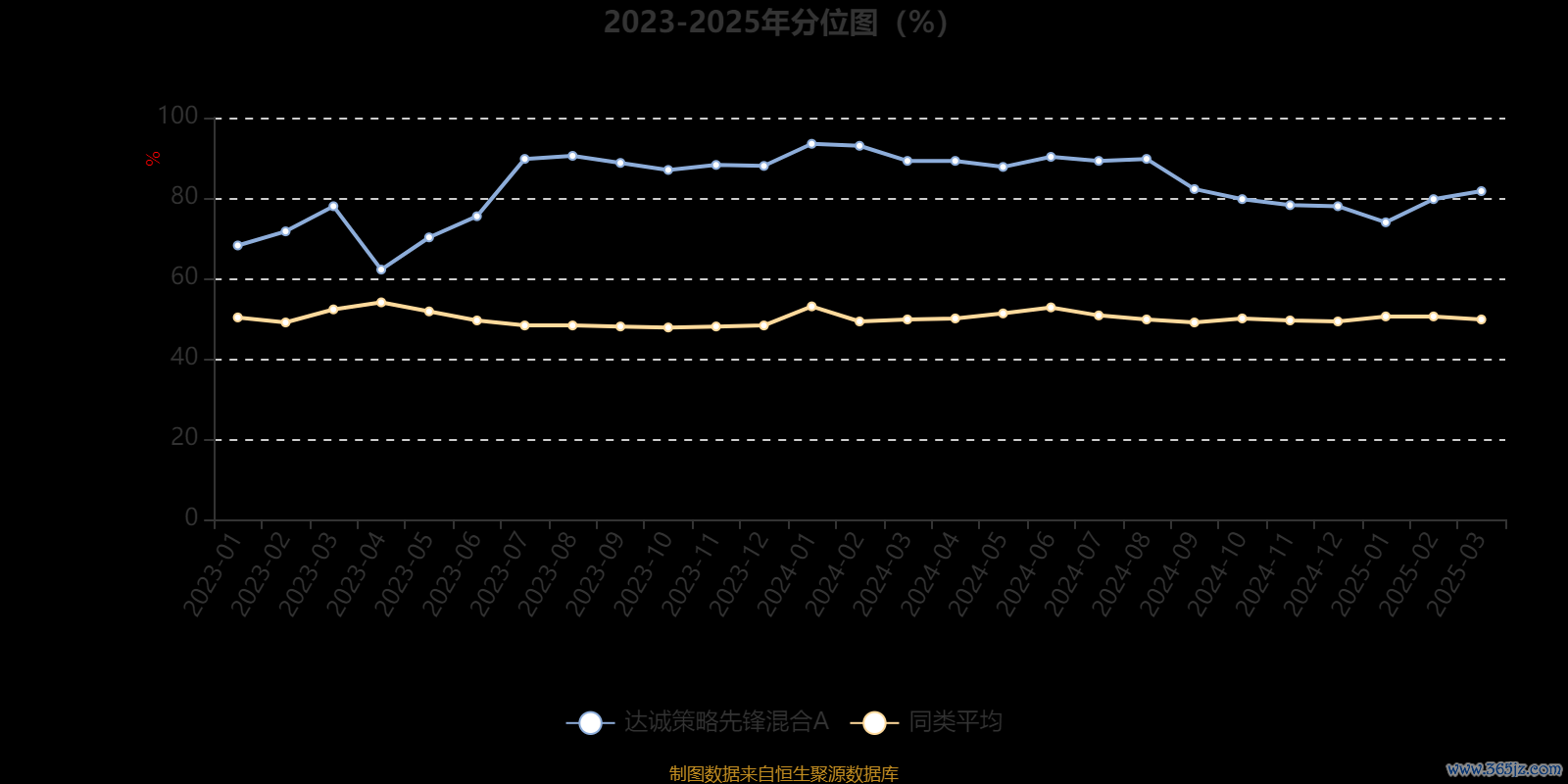通过所选区间该基金净值增长率分位图,可以观察该基金与同类基金业绩比较情况。图为坐标原点到区间内某时点的净值增长率在同类基金中的分位数。
