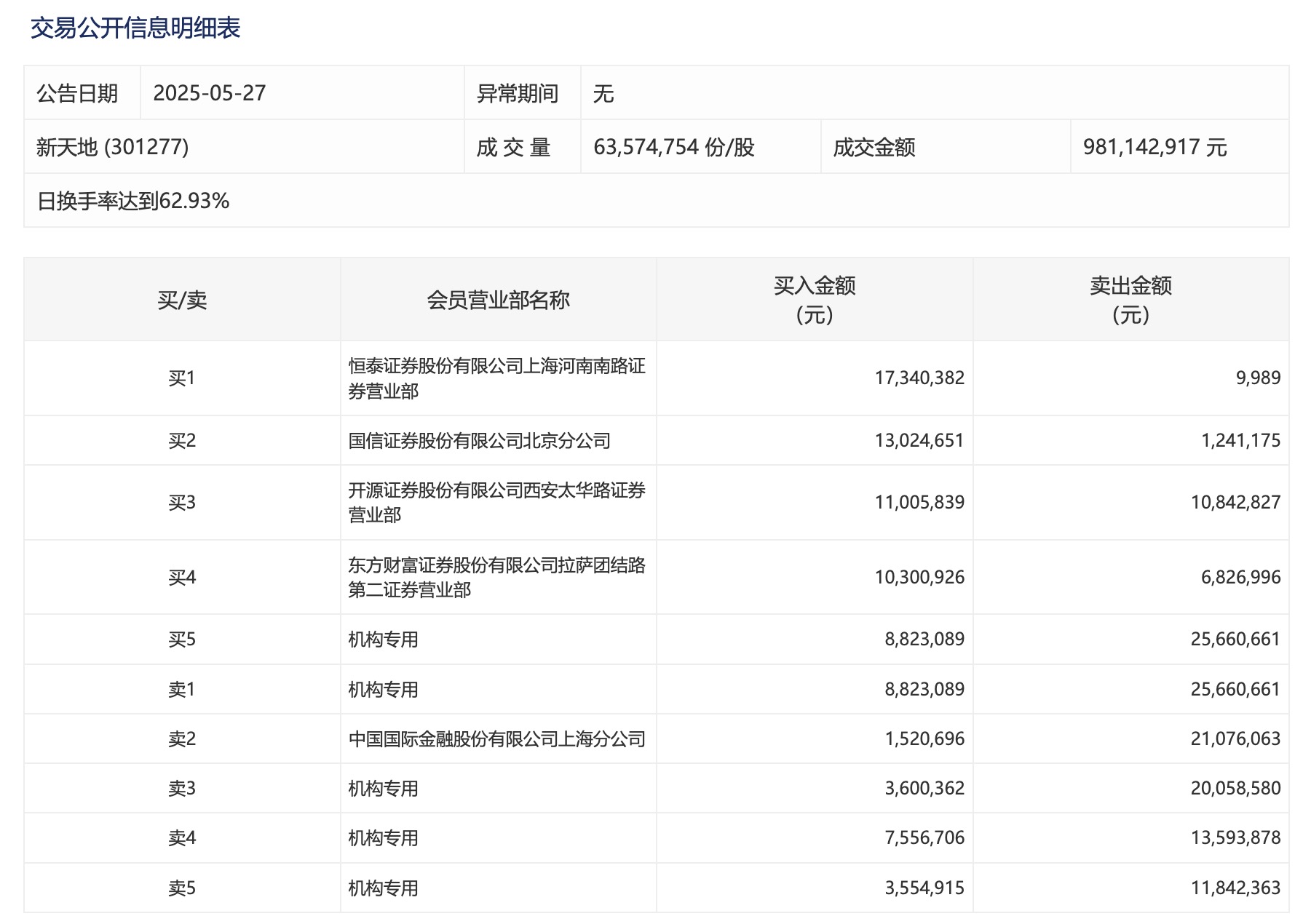新天地今日涨14.12% 四机构专用席位净卖出4762.04万元新天地今日涨14.12% 四机构专用席位净卖出4762.04万元